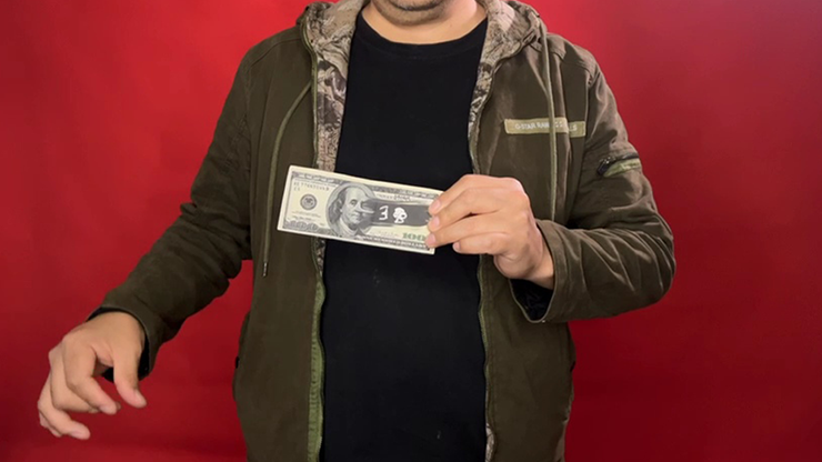 You choose a card from your deck, then from your wallet you take out a bill (dollar or euro) you heat your fingers with the help of a lighter, the heat of your fingers will melt the ink on the bill dragging it towards a end and the digits of the selected letter appear in the drag.