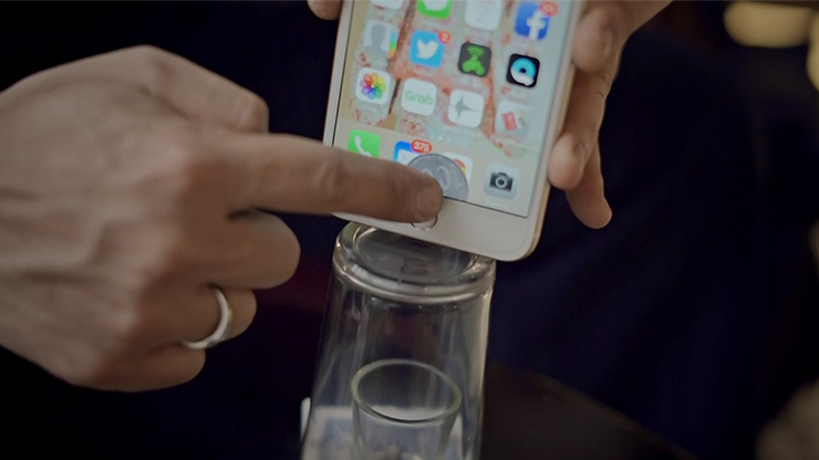 - Or, a marked finger visually penetrates a solid glass, landing in a shot glass inside the larger glass!