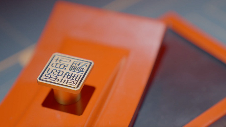 The magician places a blank piece of paper on the base and presses the stamp pad over it. The paper magically changes into a real dollar bill.