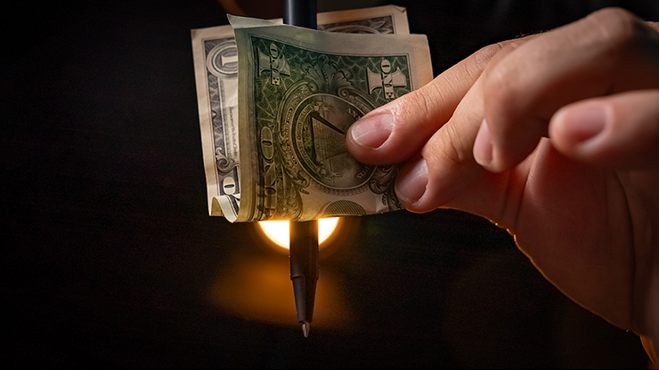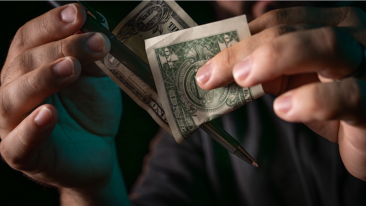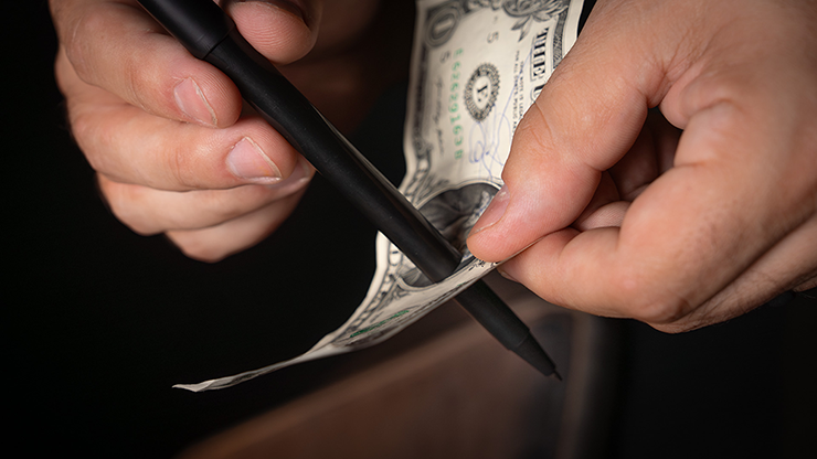 You borrow a bill from someone, and with one swift motion, you visually push a pen straight through it..