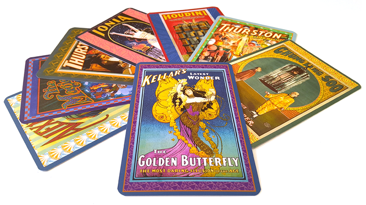 Kellar's "The Golden Butterfly" (1906), arguably his most celebrated poster was made in the typical Art Nouveau style after Alphonse Mucha. This "Pocket Devil" celebrating the illusion, developed by the Martinka Brothers in NYC. incorporates the colors and elements of the original poster and makes a lively, bright accessory.