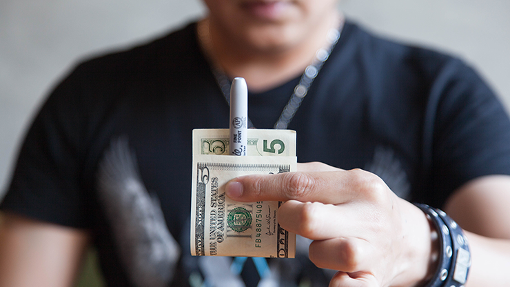 Sharp Shot is the most powerful, reliable, and VISUAL Sharpie Through Bill yet. Borrow a bill and puncture it with the Sharpie. With both of your hands empty, the spectator can actually see the tip of the marker penetrate the borrowed dollar. When the Sharpie is removed, there is NO puncture in the bill! This is visual magic with a borrowed dollar like you have never seen before.
