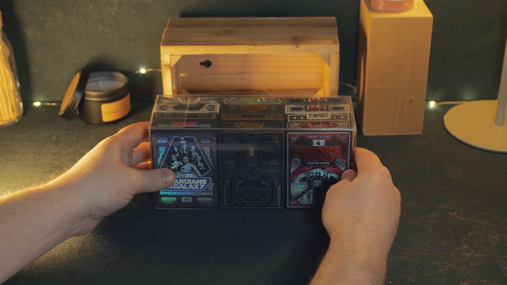 Transparent protector 12 decks. Designed for collectors who want to keep their decks in mint condition while on display, this ultra-transparent case fits two standard decks one behind the other for a perfect visual balance.
