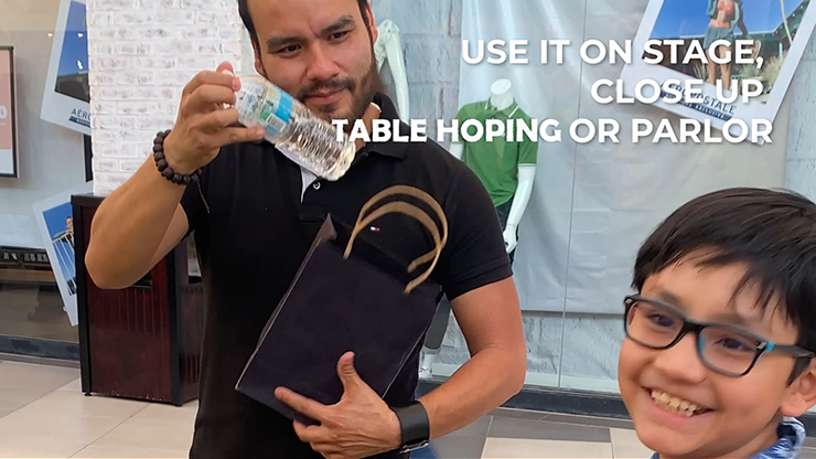What if? You present yourself on a table or a stage or a street show... Take out a paper bag, unfold it, show it front and back and then very make a glass of water or any small object appear!